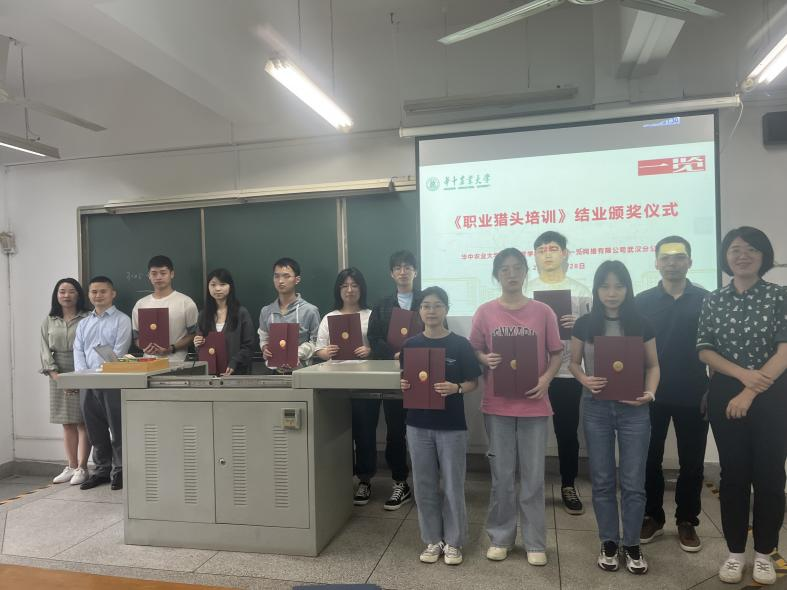 历时2个月,由4名yl6809永利官网集团人力专业教师、8名一览武汉市分公司管理人员齐心打造的创新创业课程《职业猎头实训》圆满结束。2022年5月28日下午,课程结业颁奖仪式在二教202举行。yl6809永利集团副院长罗小锋、课程组负责人施丹、一览武汉分公司总经理姚小山、经理胡甜出席,27名参课同学参加了颁奖仪式。