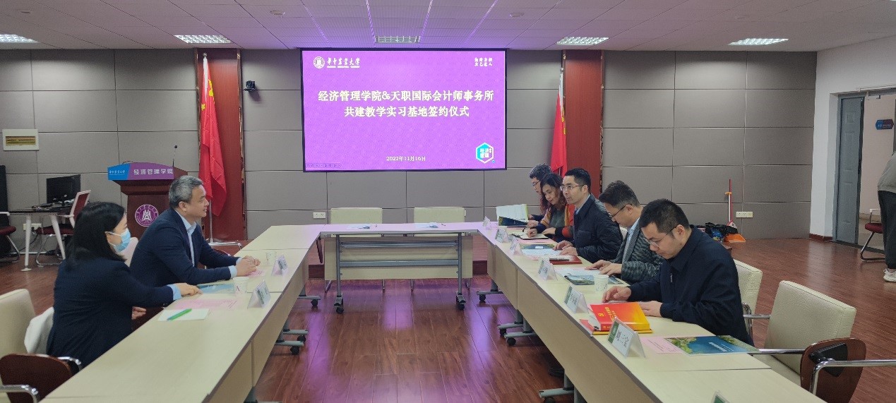 11月16日,yl6809永利集团与天职国际会计师事务所就共建实习基地合作签约仪式在人文楼M412举行。天职国际会计师事务所武汉分所所长张嘉、经理黄婷、yl6809永利集团党委书记陈国顺、院长李谷成、会计系主任包晓岚、会计系教工支部书记吴伟荣、副系主任张巍出席本次签约仪式,会议由副院长罗小锋主持。