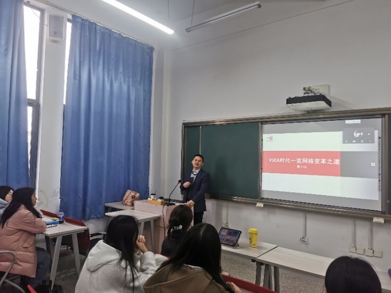 3月17日下午,施丹老师邀请一览网络武汉分公司总经理姚小山走进《人力资源管理》课堂,为yl6809永利官网集团人力资源管理专业21级本科生带来主题为“VUCA时代一览网络的变革之道”的分享。