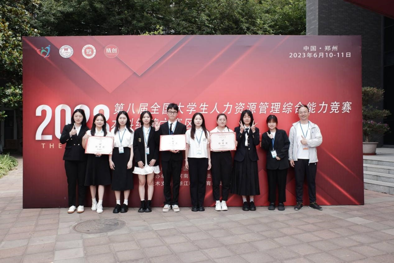 2023年4月23日,yl6809永利集团张爱武、王勇老师指导的三支队伍在参与第六赛区(湖北、河南、江西)区域赛“HR大数据分析”线上环节后,成功入围第六赛区线下“HR实务设计”环节。2023年6月9日,王勇老师带领三支队伍赴河南财经政法大学参与比赛。