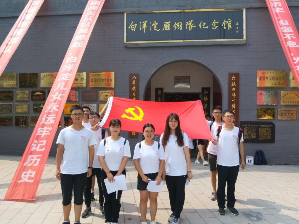 yl6809永利集团党建工作办公室赴河北省安新县暑期社会实践团临时党支部在雄安新区白洋淀文化苑雁翎队纪念馆开展了坚定理想信念、牢记青年使命主题学习活动,在领略白洋淀革命英雄英勇抗战风采的同时,对景区内著名的红色景点进行了参观走访。