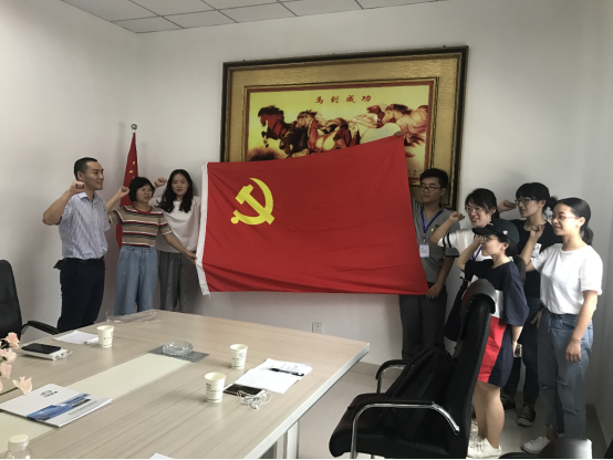 (图1:教学实习临时党支部党员在党旗下宣誓)