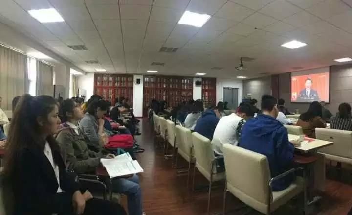 10月18日上午,中国共产党第十九次全国代表大会开幕会在人民大会堂大礼堂举行,习近平代表十八届中央委员会向大会作报告,报告主题为“不忘初心,牢记使命,高举中国特色社会主义伟大旗帜,决胜全面建成小康社会,夺取新时代中国特色社会主义伟大胜利,为实现中华民族伟大复兴的中国梦不懈奋斗”。经管院组织部分师生在人文楼A201和M412集中观看了开幕会直播,其他师生也通过各种形式进行了观看和学习。在集中观看现场,当国歌响起时,全体起立,与大会现场的代表一起高唱国歌;在观看过程中,在场师生为报告中振奋人心的论述不约而同鼓掌;观看结束,大家纷纷发表了自己的感受。