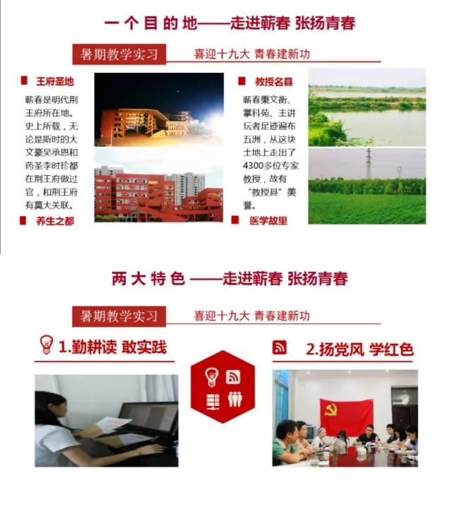 经济学系赴蕲春教学实习团队由经济学系熊学萍教授、李志平副教授、章胜勇副教授、杨芷晴副教授、李剑副教授等5位老师、36名2014级经济学系本科生组成,学生分别前往湖北省黄冈市蕲春县政府办、农办、商务局、档案局、统计局等8个实习单位进行实习。实习期间,蕲春教学实习团队在5名校内导师和二十余名校外导师的共同指导下超额完成8个单位的工作任务,并且成立了1个临时党支部、开展了4次党支部活动、制作了4期实习周报,获8次官方媒体报道,向当地政府提交了36份政策建议,积累了百余张实习照片。“勤耕读,敢实践”“扬党风,学红色”成为该团队两大特色,学生们在在实习期间的突出表现获得当地政府、实习单位以及学院的高度评价。