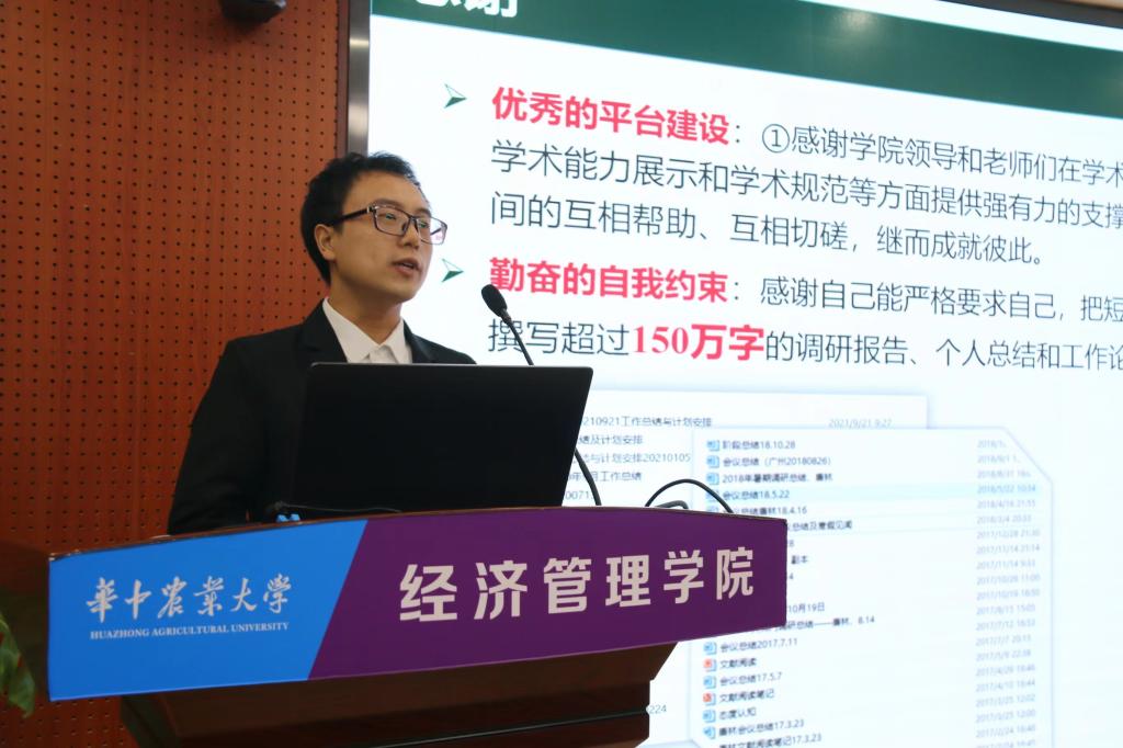 李谷成对现场师生的积极参与表示感谢,指出候选人们的精彩汇报展现了学院研究生德智体美劳全面发展的良好风貌,希望广大研究生朝着“又红又专”的方向继续进步。李谷成提出,读研是以学术为志趣和主业的,要做到“顶天立地”。“顶天”旨在建设具有中国特色的世界一流学科,研究生要面向世界的科技前沿做一流的学问,主动“走出去”培养全球视野,提升学院的国际影响力。“立地”旨在把论文写在祖国大地上,在静下心坐下来认真进行理论研究的同时,深入社会、深入群众,真正把学问做到人民群众的心坎里,努力讲好中国故事、发出中国声音、展现中国力量。