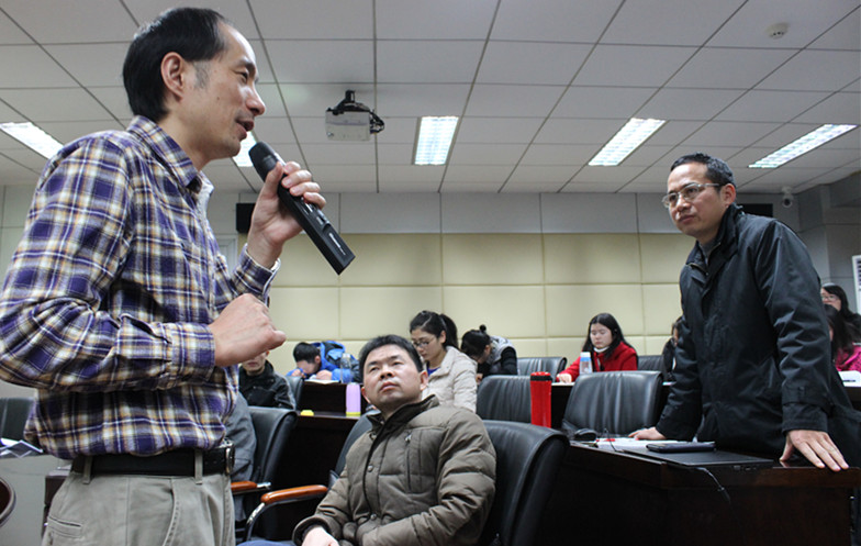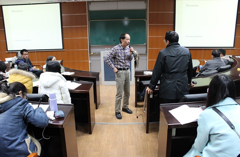 上午九时,在人文社科楼M502教室内,坐满了慕名前来学习的研究生。龚亚平教授首先给大家分享了他关于国有企业和私有企业需求差别、员工创造性影响因素、人力资源系统相关理论和模型构造等问题的研究成果以及感悟,现场听众频频点头称是,收获颇丰。随后,龚教授和大家就共同关心的研究问题进行了深入交流和探讨。对于观众所提出的问题,教授深入浅出的做了科学、详尽的解答,现场不时爆发出热烈的掌声。