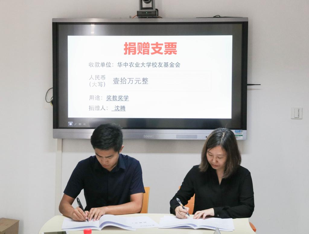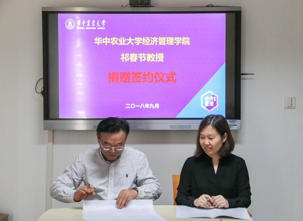 签约仪式上,青年创业家沈腾与副院长申沛共同签署了合作协议,并以个人名义向学院捐赠奖教奖学金10万元;祁春节教授代表师门师生向学院捐赠奖教奖学金101188元,并签署捐赠协议。