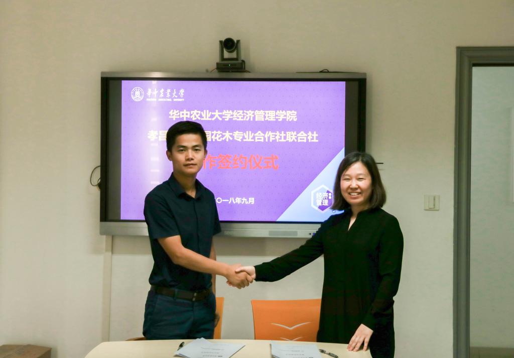9月29日上午,我院与孝昌梦里花园花木专业合作社联合社的合作签约仪式以及祁春节教授的捐赠签约仪式在人文楼副楼A212举行。合作社代表沈腾、陆仕普,经济学系教授祁春节,校教务处副处长刘震,院党委书记张越、副院长申沛出席仪式。活动由张越书记主持。