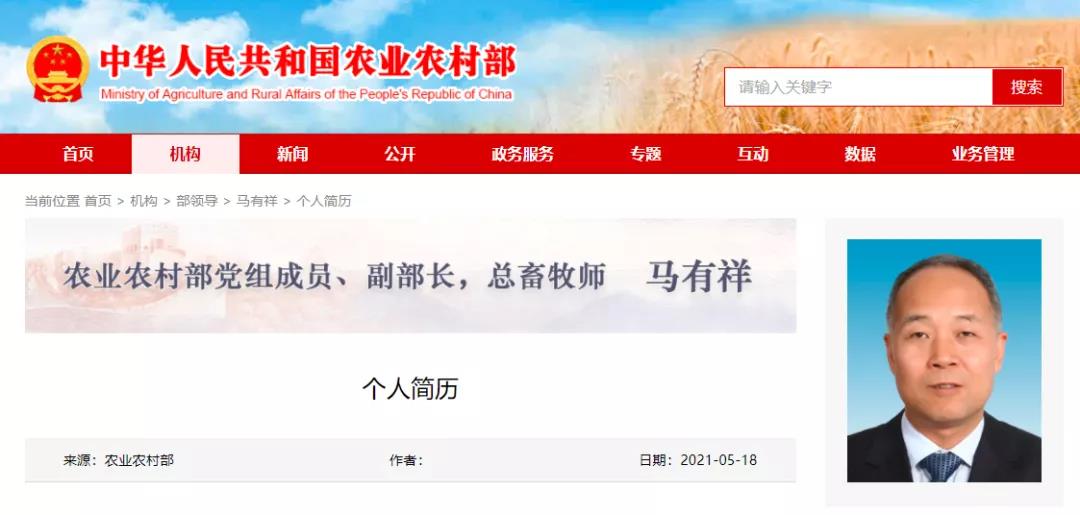 【校友履新】祝贺马有祥校友任农业农村部副部长