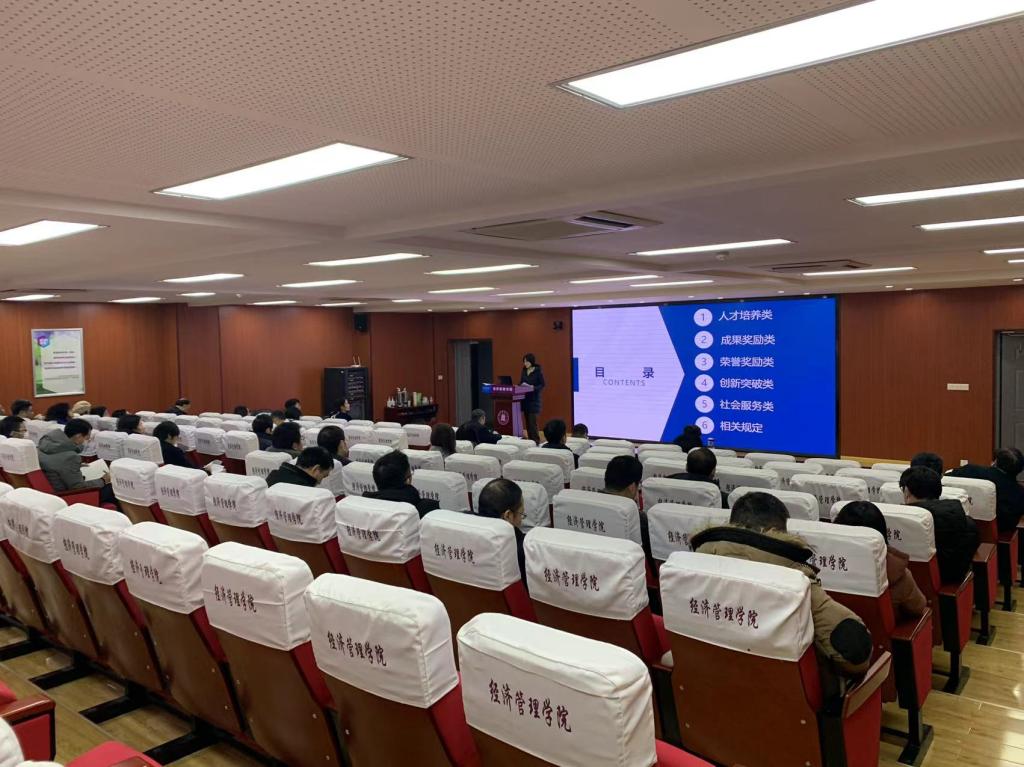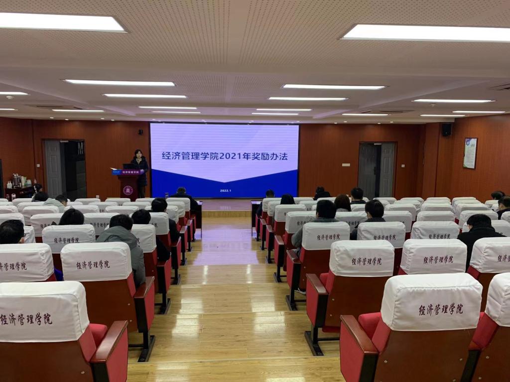 于久霞从人才培养、成果奖励、荣誉奖励、创新突破、社会服务等五大类奖项以及评奖相关规定等方面全面报告了《学院2021年奖励办法》;传达了学校年终绩效分配会议精神并报告学院2021年绩效分配基本方案,听取了与会代表的意见和建议。经全体与会代表审定,《学院2021年奖励办法》《学院2021年年终绩效分配方案》一致通过。