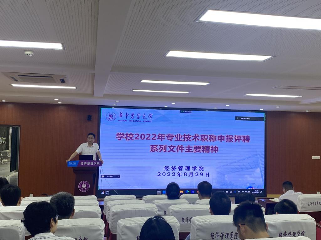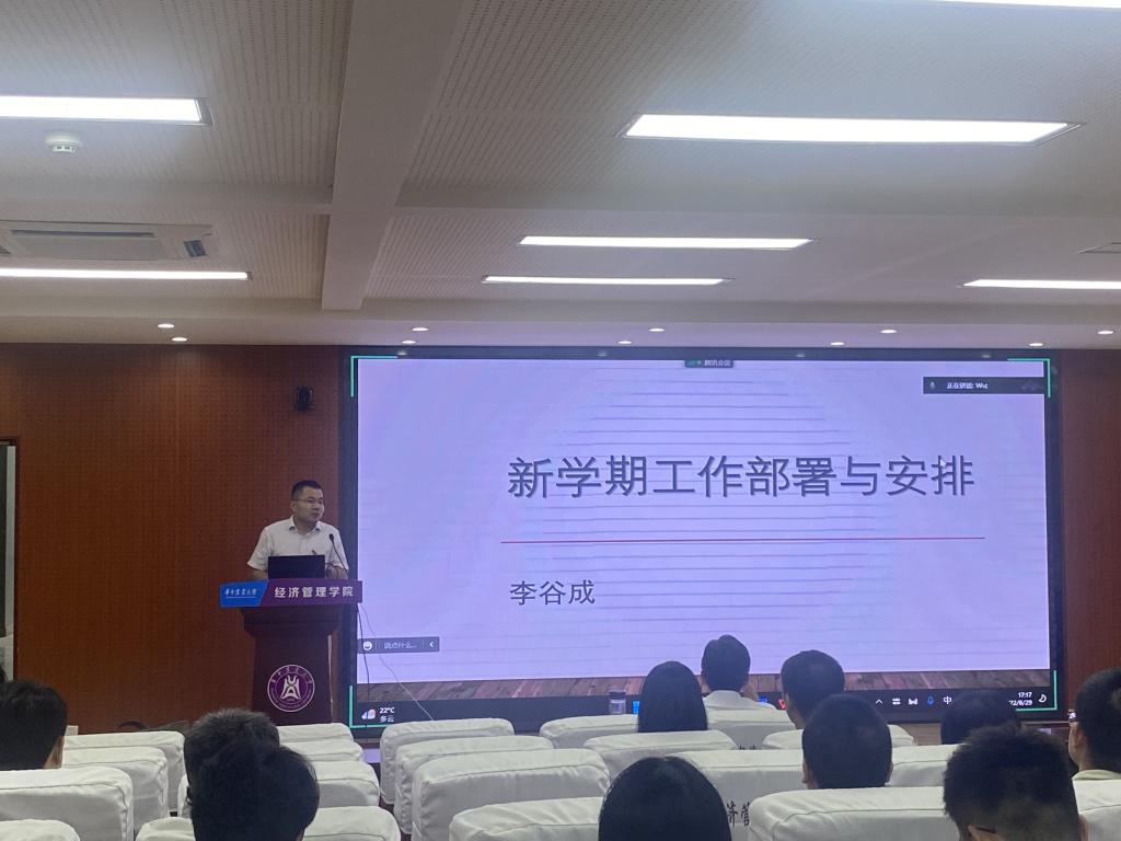 院长李谷成就暑期相关工作进行了总结,领学了《新时代高校教师职业行为十项准则》,开展师德师风专题教育,并传达了《yl6809永利官网集团国有资产使用与处置管理实施细则》等资产管理相关文件精神,重点对资产使用、处置程序进行了解读。结合新学期教学秩序、课堂管理,本科生论文抽检,迎新季、开学季工作,专业建设,科学研究与社会服务等相关工作,李谷成进行了深入部署。李谷成从思想体系、指标体系、填报说明等三个方面介绍了第二轮“双一流”建设动态监测有关指标,深入分析了此轮监测指标体系所呈现的开放性、客观性、写实性和动态性等四个主要特征,并就指标体系中破“五唯”的重要体现进行了说明,呼吁全院教职工坚持守正创新、踔厉奋发,为建设特色鲜明的一流经管而努力奋斗。