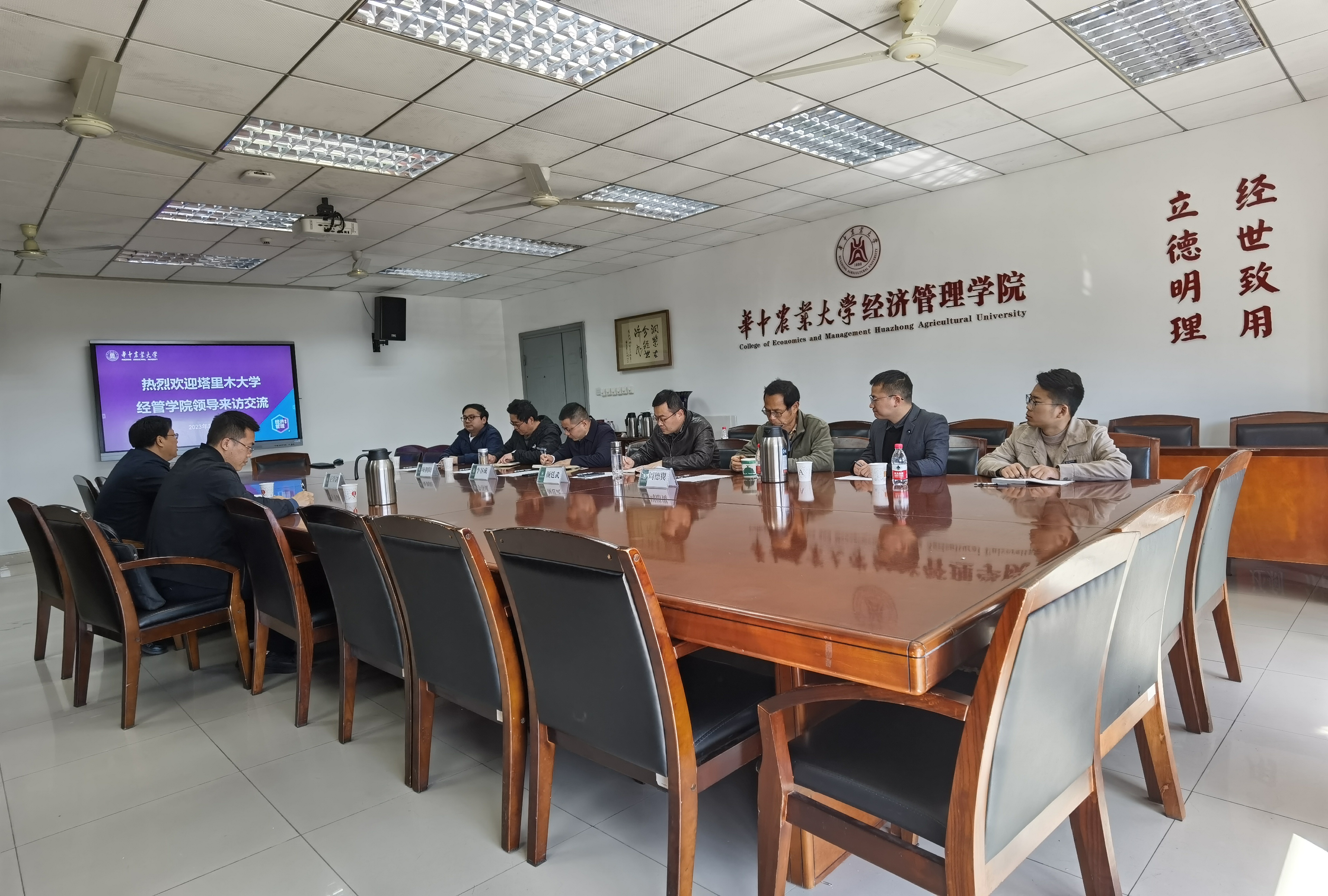 3月13日下午,塔里木大学经济与管理学院院长王学剑、工商管理系副主任马信春来我院调研并座谈交流。我院院长李谷成,副院长颜廷武、项朝阳,