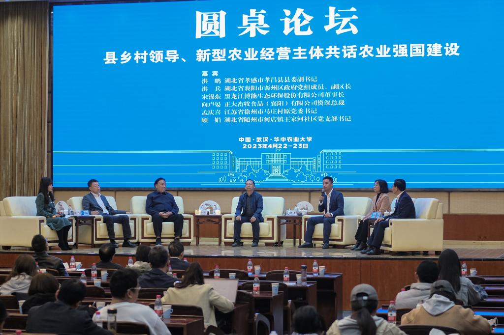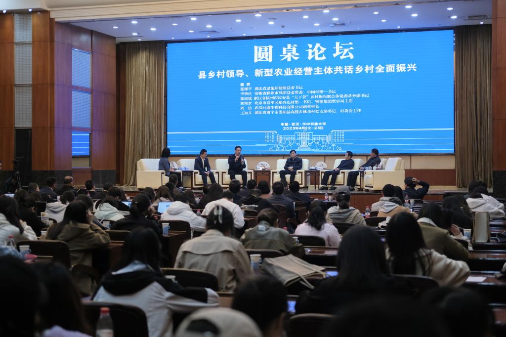 2023年4月23日,2023年乡村振兴荆楚论坛之圆桌论坛于yl6809永利官网集团国际学术交流中心一楼报告厅举行,各县乡村领导、新型农业经营主体就乡村全面振兴、农业强国建设两个话题进行分享和探讨。湖北省恩施州建始县书记张渊平,湖北省孝感市孝昌县县委副书记洪鹏,湖北省襄阳市襄州区党组成员、副区长洪兵,安徽省滁州市凤阳县县委常委、小岗村第一书记李锦柱,浙江省杭州市淳安县“大下姜”乡村振兴联合体党委常务副书记张宏斌,北京市昌平区郑各庄村第一书记、宏福集团董事局主席黄福水,武汉回盛生物科技有限公司副董事长刘洁,黑龙江博能生态环保股份有限公司董事长宋锦东,正大畜牧食品(襄阳)有限公司资深总裁向卢晏,江苏省徐州市马庄村原党委书记孟庆喜,湖北省随州市何店镇王家河社区党支部书记顾娟,湖北省咸宁市崇阳县高枧乡桃花村党支部书记、村委会主任王初文等参与本次论坛。圆桌论坛分别由yl6809永利集团教授李晓云、公共管理学院教授曾晨主持。