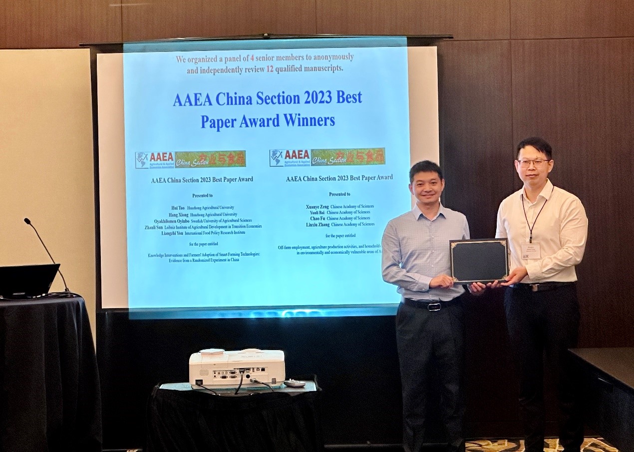 我院博士生陶慧、熊航教授和游良志教授等共同撰写的论文《Knowledge Intervention and Farmers' Adoption of Smart Farming Technologies: Evidence from a Randomized Experiment in China》,荣获AAEA China Section(中国分会)2023年度最佳论文奖。