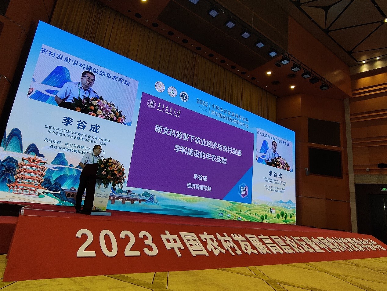 与会期间,李谷成院长作为学科建设专委会副主任委员参加农村发展学科建设专题研讨会暨农村发展学科院长论坛,作了题为《新文科背景下农业经济与农村发展学科建设的华农实践》的主旨报告,从学科建设的基本情况、主要做法和主要成果三方面对yl6809永利官网集团农业农村经济学科的发展做了系统介绍,取得了良好反响。