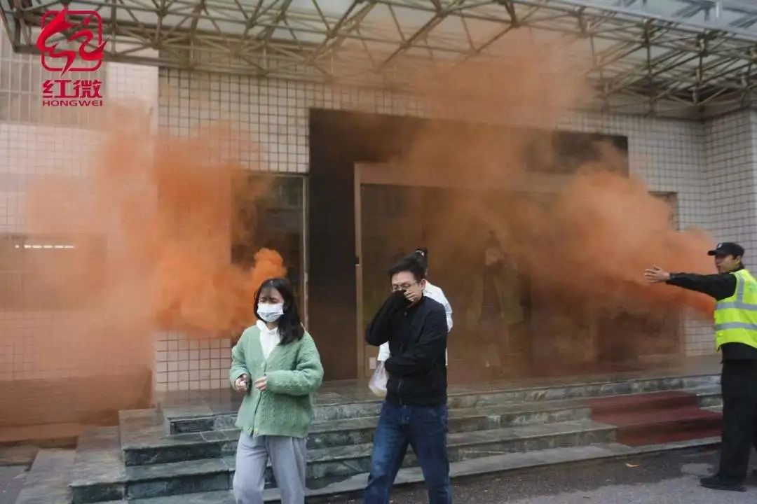 此次演习进行了大量的准备工作,包括演练的通告张贴,火盆的点燃,烟雾罐的摆放,演习时逼真烟雾的使用、警报器的暴鸣更是真实模拟了火灾时的场景,使师生身临其境,更加具有代入感。