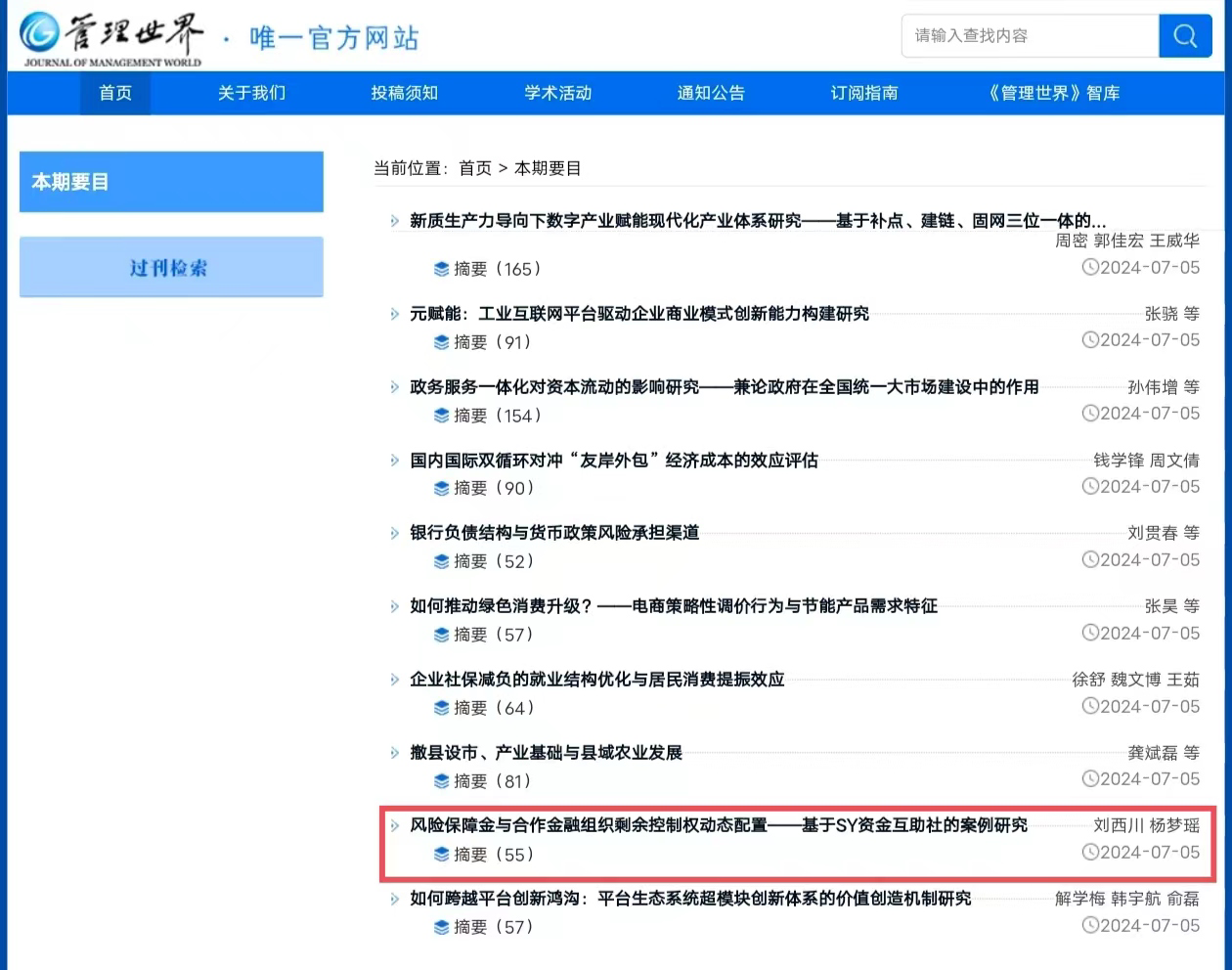 论文信息:刘西川、杨梦瑶:风险保障金与合作金融组织剩余控制权动态配置——基于SY资金互助社的案例研究,《管理世界》,2024年第7期,第157-174、203页。