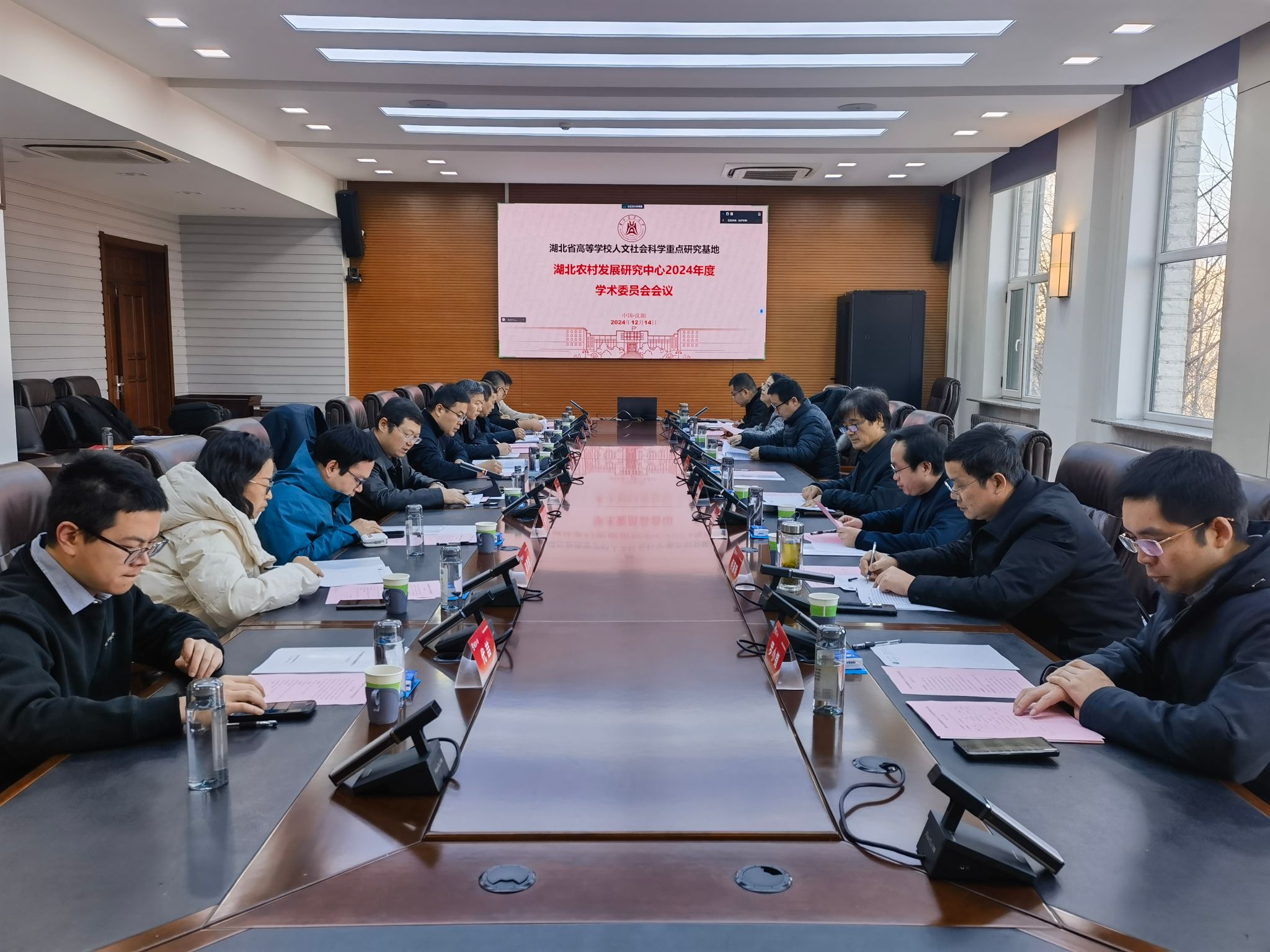 南湖新闻网讯(通讯员 李虎)12月14日,我校主导建设的湖北省人文社会科学重点研究基地——湖北农村发展研究中心,召开2024年度学术委员会会议。湖北农村发展研究中心学术委员会主任、辽宁大学党委常委、副校长仇焕广教授,浙江农林大学浙江省乡村振兴研究院首席专家张俊飚教授,中南财经政法大学工商管理学院院长吴海涛教授,中南民族大学经济学院院长李波教授,湖北省社会科学院科研处处长彭玮研究员,中国地质大学(武汉)yl6809永利集团副院长程胜教授,湖北省农业科学院农经所副所长邢美华研究员,长江大学科学技术发展研究院常务副院长徐辉教授,长江大学经济与管理学院党委书记樊帆教授、副院长何蒲明教授,我校科学技术发展研究院人文社科处副处长王鹏,我院院长李谷成教授、副院长罗小锋教授、颜廷武教授,以及青年教师闵师教授、何可教授、吴雪莲教授、林龙飞副教授和代喆副研究员等中心学术委员会委员及中心主要成员受邀参加。会议由我院院长李谷成主持。