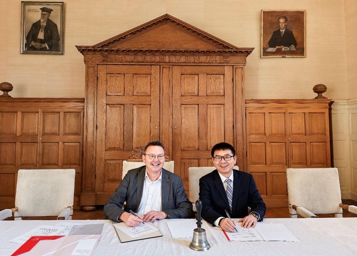 签署协议签前,严建兵校长为我院首位获得双博士学位的李腾同学颁发了我校博士学位证书。李腾已于2024年12月通过格罗宁根大学博士论文答辩并取得博士学位,2025年6月完成我校博士学位登记并取得博士学位。