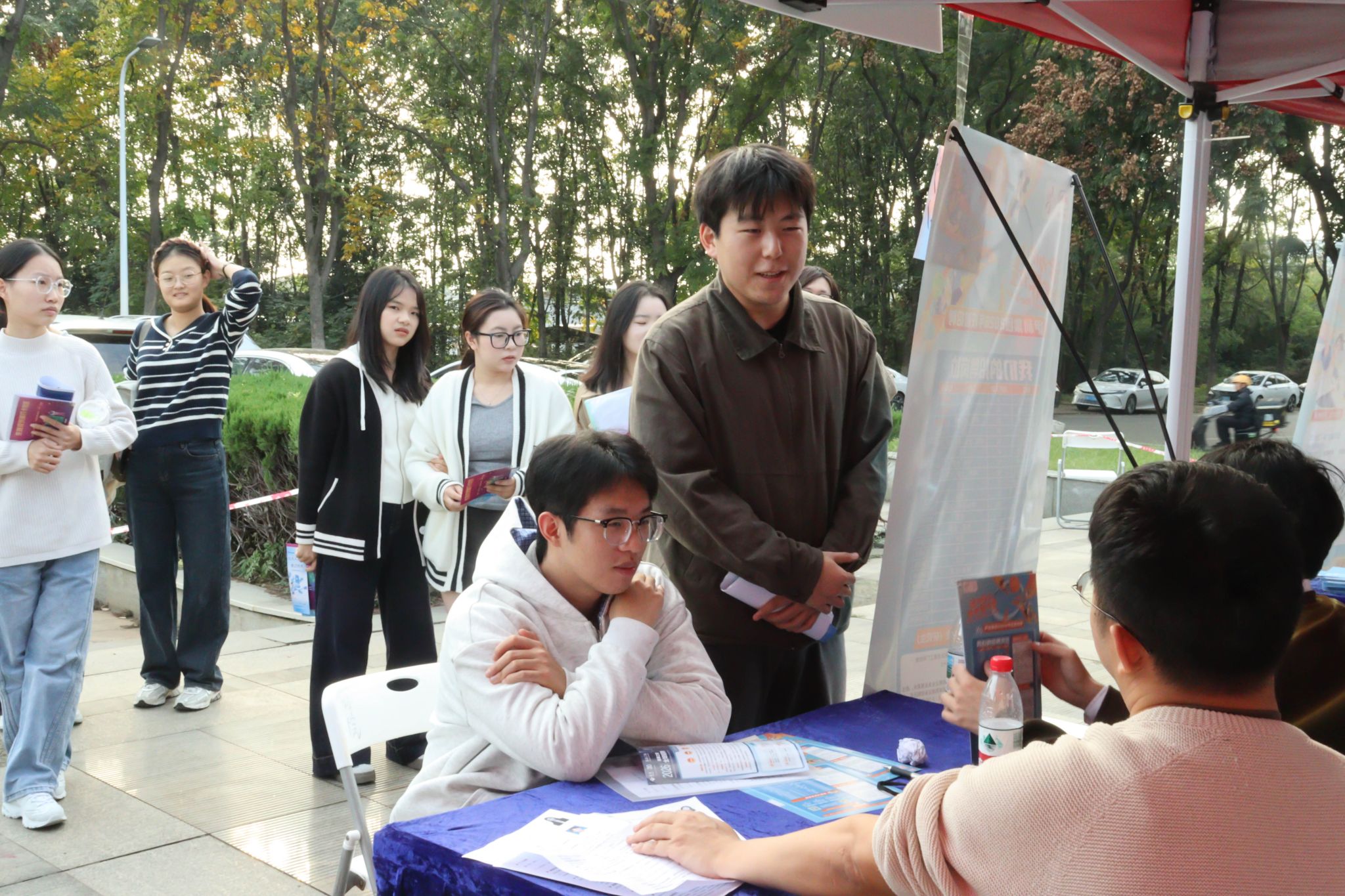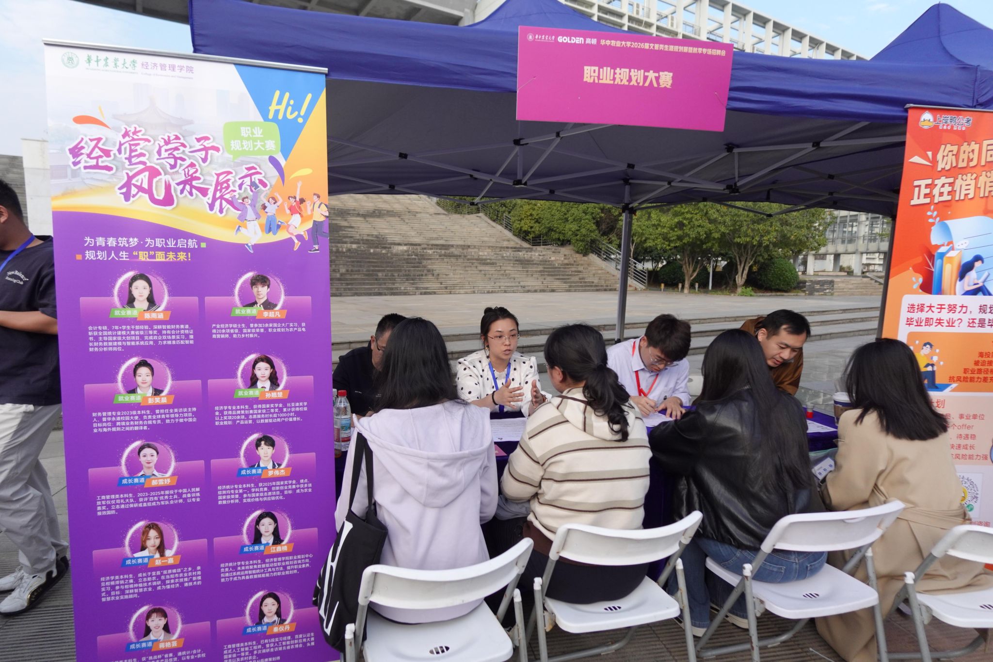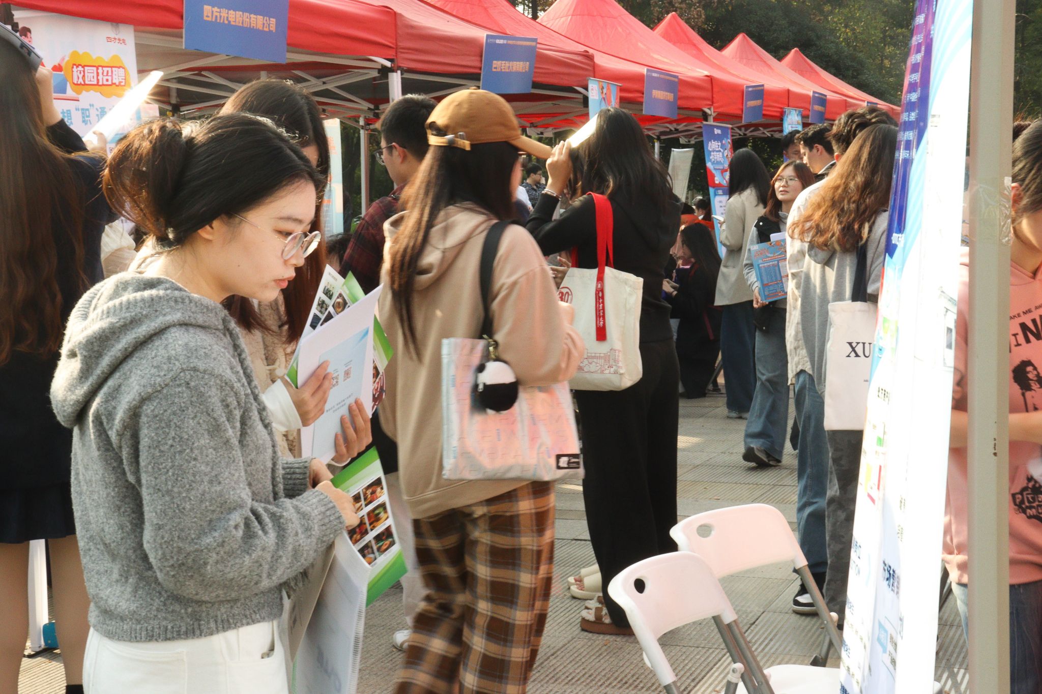 南湖新闻网讯(通讯员 杨梓蔚 吴娇)11月15日下午,yl6809永利官网集团2026届文管类生涯规划展暨秋季专场招聘会在人文社科楼附楼外广场举行。活动旨在精准对接文管类学生多元化发展需求,搭建毕业生与用人单位双向选择平台,由本科生院、研究生院、yl6809永利集团联合主办,文法学院、外国语学院、公共管理学院、华农林肯学院协办,吸引了三十余家企业及近千名学生参与。