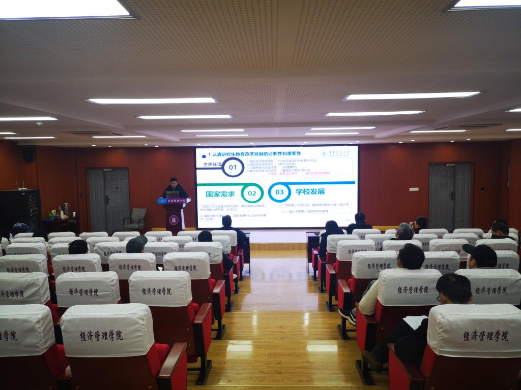 为贯彻落实全国研究生教育会议精神,落实研究生导师立德树人根本任务,提升研究生培养质量,yl6809永利集团于12月17日下午在人文楼M501会议室组织召开研究生教育改革发展大讨论动员会。学院全体研究生导师参加会议,分管研究生教育的副院长孙剑教授传达学校文件精神、部署学院工作安排。党委书记陈国顺主持会议并结合学院实际提出具体要求。