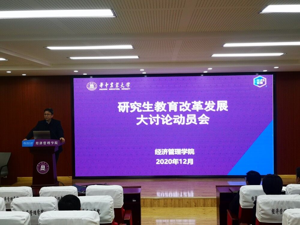 陈国顺充分肯定了与会老师在研究生教育教学一线为学院研究生教育发展所做出的不懈努力和积极贡献,同时在讲话中就进一步做好研究生教育改革发展提出四点要求:1)提升课程教学质量,切实做到有趣、有用、有深度、有思考;2)提升对研究生学术能力的培养,有计划、有路线,循序渐进、因材施教,探索研究生培养新模式;3)增强学生情感教育,言传身教,潜移默化,用学者的魅力感染学生;4)提升对研究生学位论文的指导质量,“师傅引进门,修行在个人”的本质首先是要“引进门”,导师要手把手地教方法,逐字逐句地改文章,悉心培育质量,善于学术包容。陈国顺最后对全体研究生导师寄予三点期望:明责,履责,尽责。希望每位导师都能增强责任感、归属感、认同感和凝聚力,共同推进学院研究生教育深化改革,推进研究生培养质量持续向好发展,为新时代中国特色社会主义建设贡献华农经管力量。