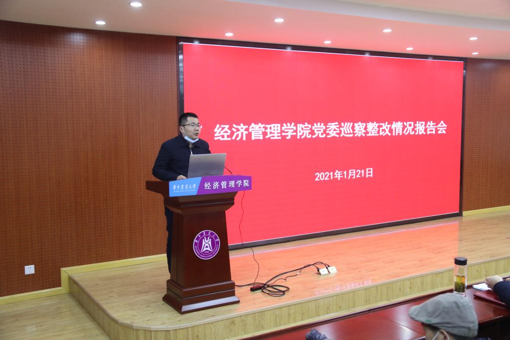 根据校党委巡察工作统一部署和安排,1月21日下午,我院在人文楼M501学术报告厅召开巡察整改情况报告会。校党委副书记、纪委书记廖济忠,第三巡察组全体成员,学院全体教职工,离退休教职工代表和学生代表参会。会议由学院院长李谷成主持。