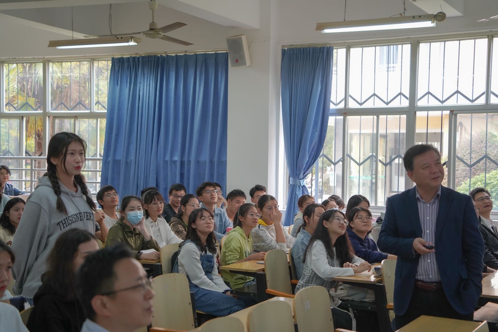 11月2日下午,校党委副书记、副校长姚江林在二教103为经济学类新生上了一堂“形势与政策”课。学院党委书记陈国顺、党委副书记刘三宝及马克思主义学院刘双副教授、新生辅导员米佳乐、彭松共同参与此次课程学习。