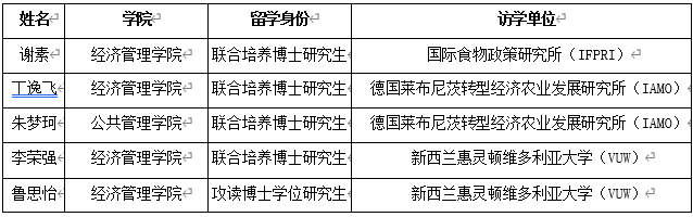 根据国家留学基金管理委员会《关于做好2024年创新型人才国际合作培养项目第一批人员申报工作的通知》的有关要求,按照公正、公平、公开的原则,经个人申请、学院推荐、学术委员会评审,拟推荐以下学生参加我校“数字经济背景下的农业产业升级” 创新型人才国际合作培养项目: