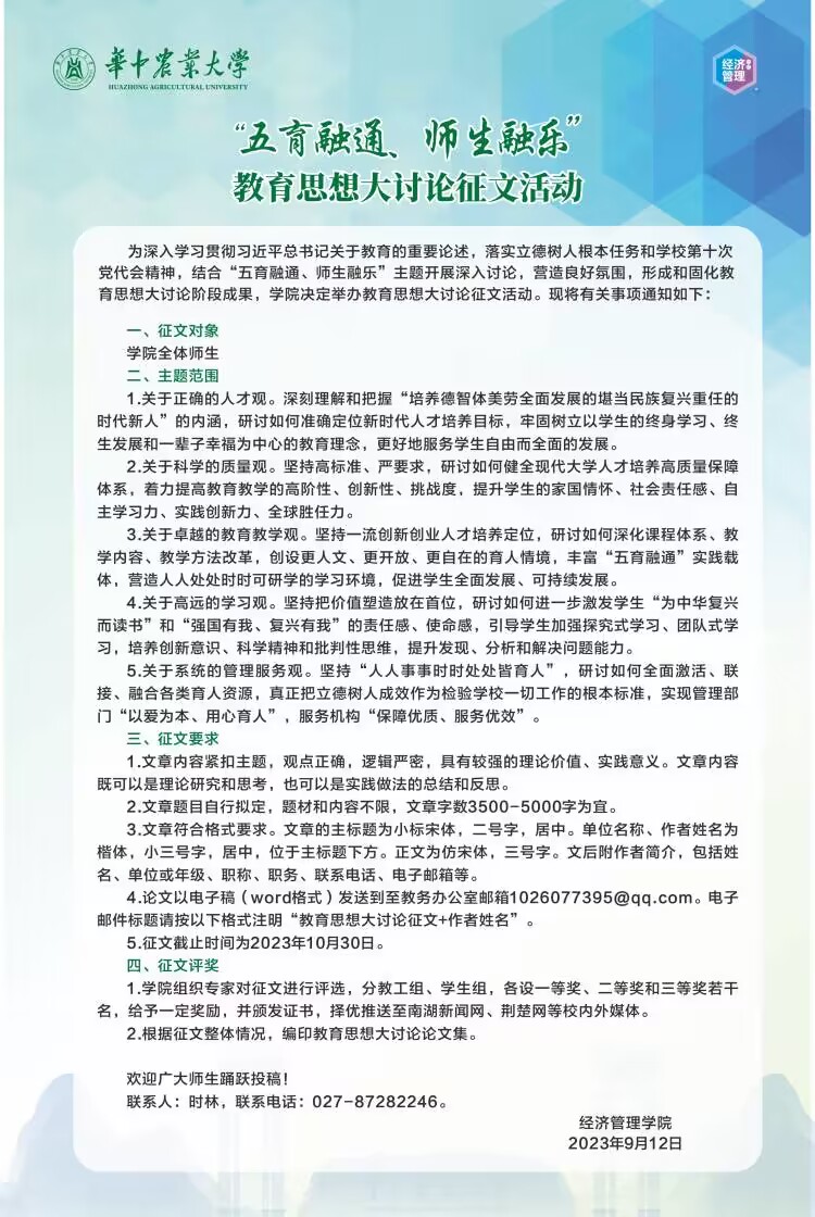 【教育思想大讨论】“五育融通 师生融乐”教育思想大讨论征文活动