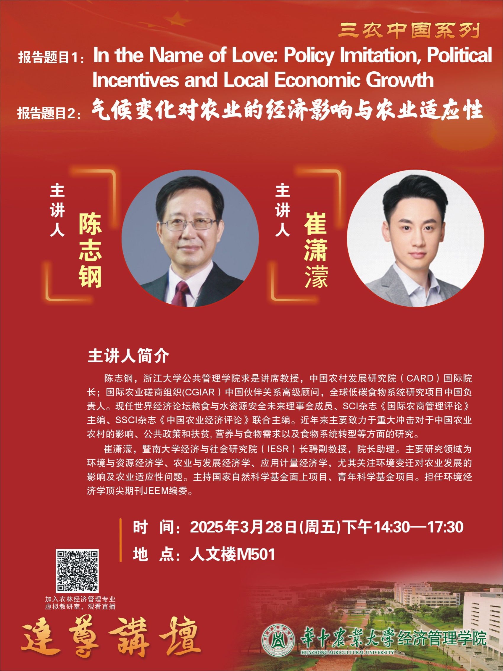 1.In the Name of Love: Policy Imitation, Political Incentives and Local Economic Growth 2.气候变化对农业的经济影响与农业适应性