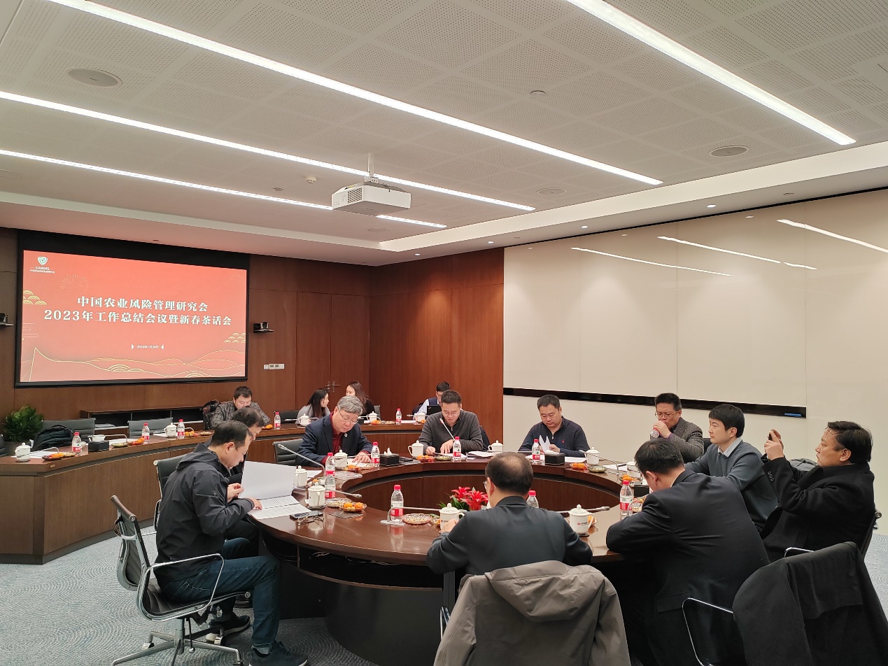 2024年1月24日,中国农业风险管理研究会2023年工作总结会在北京中华保险大厦举行。中国农业风险管理研究会会长张红宇和分支机构负责人出席会议,研究会常务副会长兼秘书长唐园结主持会议。我院教授李剑、熊涛代表华中农业风险管理研究中心参加会议,并作中心年度工作报告。