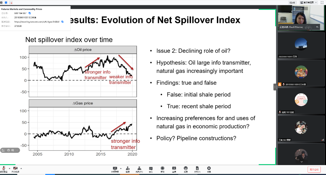 核心提要:2021年7月17日晚7:30-9:00,美国西弗吉尼亚大学农经系副教授Xiaoli L. Etienne博士做客达尊讲坛第383期,为师生们带来题为“页岩气技术革新、油气价格与美国钻探行业行为”的线上学术讲座,并在此前受邀讲授学院暑期全英文课程《期货市场与商品价格》。此次讲座由yl6809永利集团李谷成教授主持。