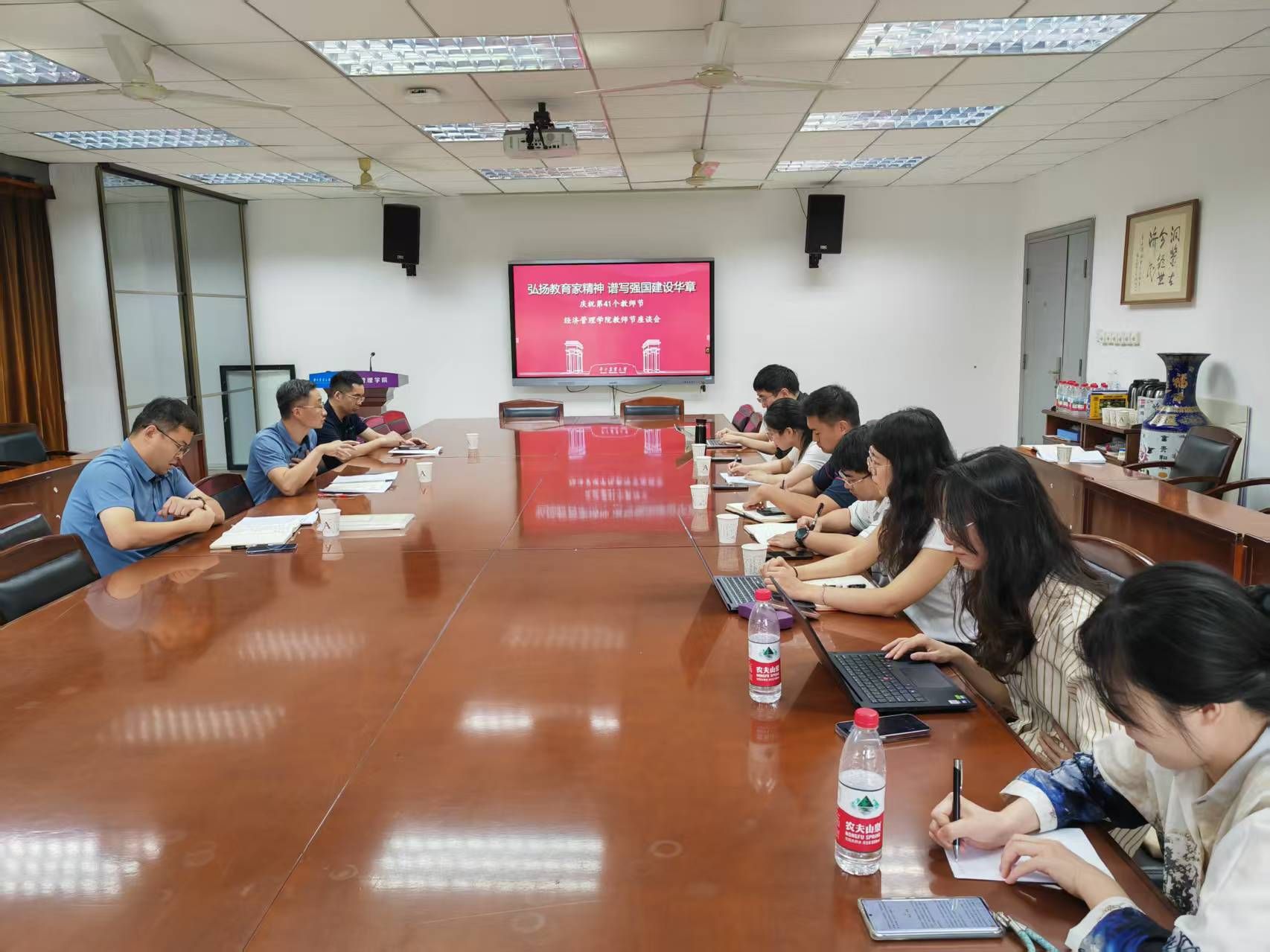 在喜迎第41个教师节之际,学院于2025年9月10日上午,在人文楼A201 召开了以“新进教师职业发展”为主题的教师节座谈会。近两年新进的8名教师参加了座谈,学院党委书记向晋文、副院长颜廷武出席了会议。座谈会由学院副院长、教师发展分中心主任罗小锋主持。