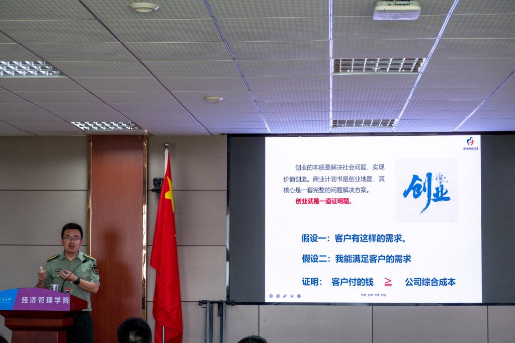 接着,刘三宝从评委的角度出发,为同学们讲解了撰写商业计划书需要关注的三个核心问题。一是创新性。项目与众不同的特色与亮点是如何实现的;二是商业性。项目一定要精确覆盖从市场、营销到盈利能力等各商业环节的分析,体现出产品或服务的商业能力。三是公益性。他结合“青年红色筑梦之旅”赛道特征,提出要整合项目各项资源,在国家有关政策的指引下,带动乡村振兴、产业振兴、农村就业等社会性问题,争取带动更多人从项目中受益。