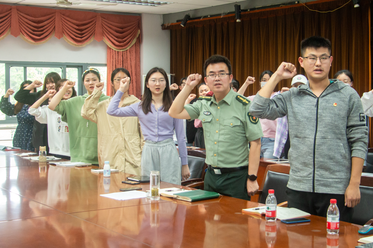 最后,与会师生在学院研究生团工委副书记仲凯健的带领下重温了入团誓词。