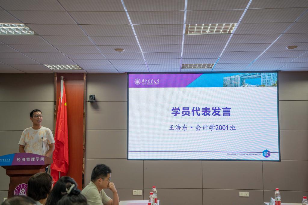 会计学2001班王浩东作为学员代表发言。学如弓弩,才如箭簇。王浩东首先对第四期“达尊班”学员的师生会面表达了兴奋之情,并分享了自身对于“达尊班”的见解。同时他也提出了自己的三大规划:吃饱“大锅饭”,学懂弄通专业必修课程;品透“精细粮”,扎实掌握科研额外课程;树立远志向,清楚明确自身发展目标。yl6809永利集团副院长罗小锋作为导师代表首先对第四期“达尊班”学员表示祝贺。随后,他向大家介绍了沈达尊先生的生平以及“达尊班”的创办历史。罗小锋谈到,创办“达尊班”是对沈达尊先生的纪念,更是对其精神的传承。他对学员们提出三点希望:一是学习一种精神。进入“达尊班”不是学习的结束,而是目标、任务的开始,新学员应学习沈达尊先生的精神,报效祖国,响应祖国号召;二是培养一种志趣。坚定学术志趣,不断钻研,不断探索“为什么要做研究、如何做研究、做什么样的研究”,始终保持对于学术钻研的热爱;三是成为一个榜样。勤于学习、努力奋进、以身作则,做身边人的榜样、做后期“达尊班”学员的优秀榜样。