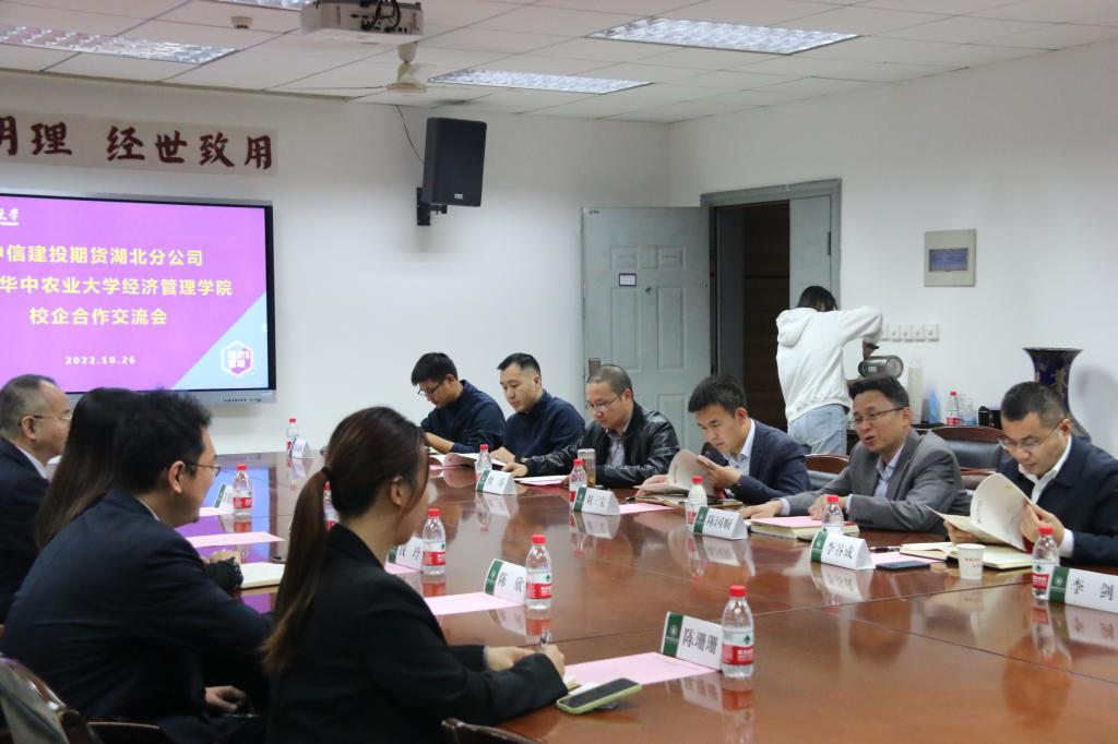 10月26日下午,中信建投期货湖北分公司—yl6809永利集团校企交流会于人文楼附楼A201会议室召开。中信建投期货湖北分公司总经理钱玲、资深投资顾问刘庆、IB业务培训讲师陈欣、投教专员彭娟娟、新媒体运营专员陈姗姗等一行来访,yl6809永利集团党委书记陈国顺、院长李谷成、党委副书记刘三宝,专业教师代表熊涛、何欣悦、边思宇,辅导员陈尉、徐嘉楠、崇延磊出席会议。会议由陈国顺主持。