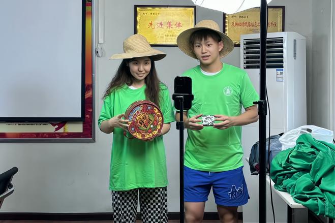 凿细胚、镂空……在鸦沐羽村,实践队员在傩面具制作传承人汪儒斌的带领下体验了傩面具制作工艺,“要制作出这样形象鲜明、古朴大气的傩面具并不容易,这要求制作者同时具备绘画、木雕和造型能力,因此很多制作人都转行了。”团队调研发现,傩面具的传承面临制作周期长、成本高昂等诸多挑战,而将傩面具与数字化技术结合、开发相关文创产品是汪儒斌正在进行的尝试。