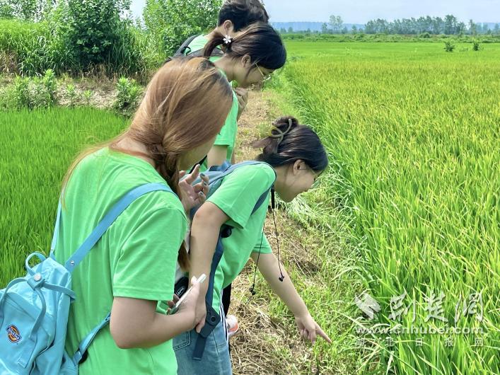 “双水双绿”模式如何带动当地发展?“稻鸭虾”共生模式如何促进农田生态系统和谐稳定?带着这些问题,“墨稻虾舞,绿意共生”实践团分别赴荆州和武汉两地,深入调研黑米种植与“稻鸭虾”共生模式。在合兴村,田间地头,稻香四溢,通过实地考察,团队成员亲眼见证了“稻鸭虾”共生如何巧妙融合水稻、鸭子与虾苗、如何构建微型生态平衡系统。成员杨子琰感慨道:“合兴村的绿色奇迹,实则是科技赋能农业、产业带动乡村振兴的生动实践。唯有深入田间地头,方能真切体会农业科技如何实实在在惠及农民。”