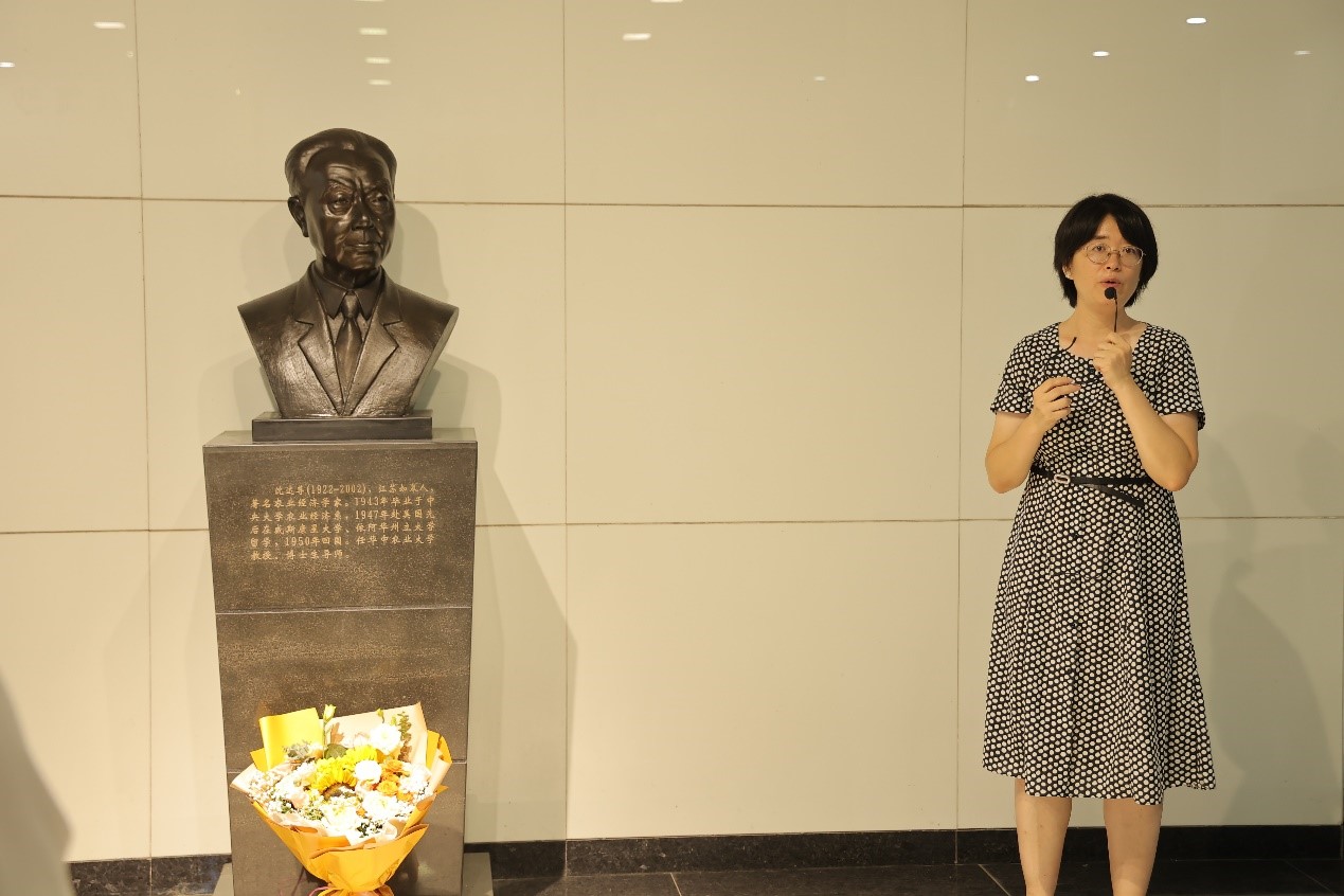企业管理系教工党支部书记施丹副教授与在场师生分享了沈达尊先生爱国、治学、育人的动人故事。八十年前,沈达尊先生怀揣报国之志,自当时的中央大学农业经济系毕业后,赴美深造,1948年获美国威斯康星大学硕士学位,后转学美国依阿华州立大学攻读博士学位,师从著名经济学家厄尔·黑迪,后者曾被提名诺贝尔经济学奖,被誉为“第二次世界大战以后,对农场管理和生产经济学的发展最有影响的人”。