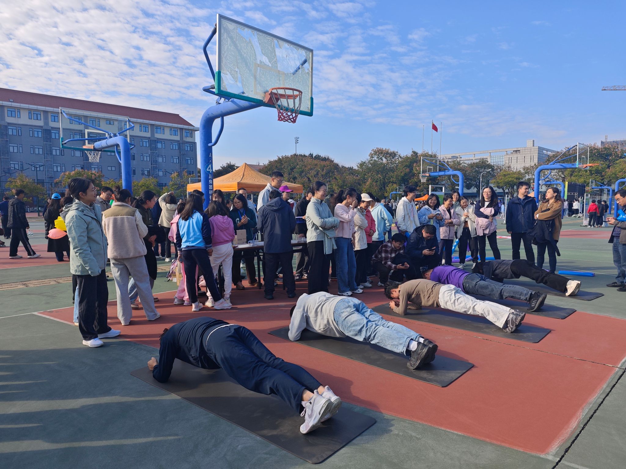 会计系的老师们更掀起了“突破极限”的热潮,主动挑战平板支撑60秒的上限。秒针一格格跳动,老师们的身躯渐渐发颤,手臂也开始不稳,但意志却如钢铁般坚韧——每个人都憋着一股不服输的劲,不肯轻易喊停。“三!二!一!”当倒计时结束,全场掌声如潮水般涌来,大家纷纷向这份“超纲”的毅力致敬。