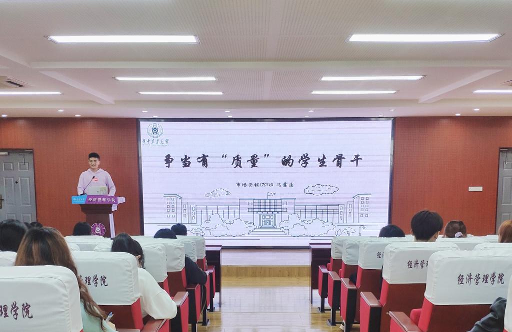 11月8日下午,“经管之光”培训活动结业仪式正式开始。水深占鳌头,月中折桂枝,此次培训按照积分制原则,参考学生骨干培训表现,授予程浩南、王紫毅、杨刘洋、张予欣、张露兮五位同学“2020年经管之光学生骨干培训班优秀学员”的荣誉,并由陈尉老师为其赠与纪念品。随后程浩南代表优秀学员发言,他表示以后的活动中会继续坚持以高标准要求自己,追求卓越,追求完美。张予欣激动地谈道:“参与此次培训获益良多,在以后的工作中要始终坚持高标准、严要求,做最闪耀的那一缕经管之光!”