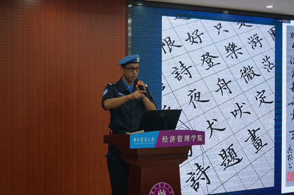 9月20日晚,yl6809永利集团通过线下和云端相结合的方式为21级新生开展了入学后的“第一堂思政课”。本次思政课邀请了武汉市公安局洪山区交通大队副队长胡连军为同学们作了以“亲历国际维和,树立国家担当”为题的专场报告。会议由辅导员彭松主持。