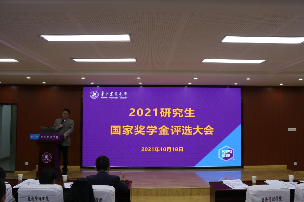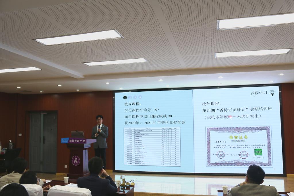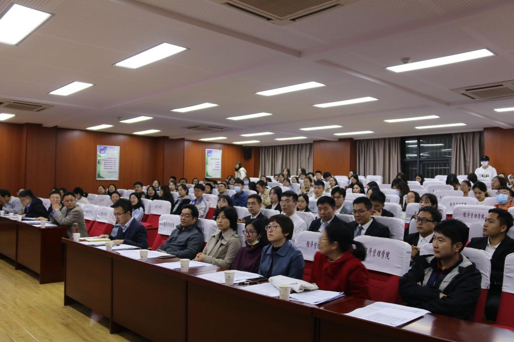 10月18日晚,yl6809永利集团2021年研究生国家奖学金候选人答辩会在人文楼M501举行。经过个人申请、学院初审,共有5名博士研究生、8名硕士研究生进入本次国家奖学金终审候选人汇报答辩环节。学院党委书记陈国顺、党委副书记刘三宝、副院长于久霞,陶建平、周德翼、夏春萍、刘灵芝、朱再清、刘西川、项朝阳、张露、李剑等9位导师代表和30余名学生代表组成的大众评审团参加了答辩会并担任评委。