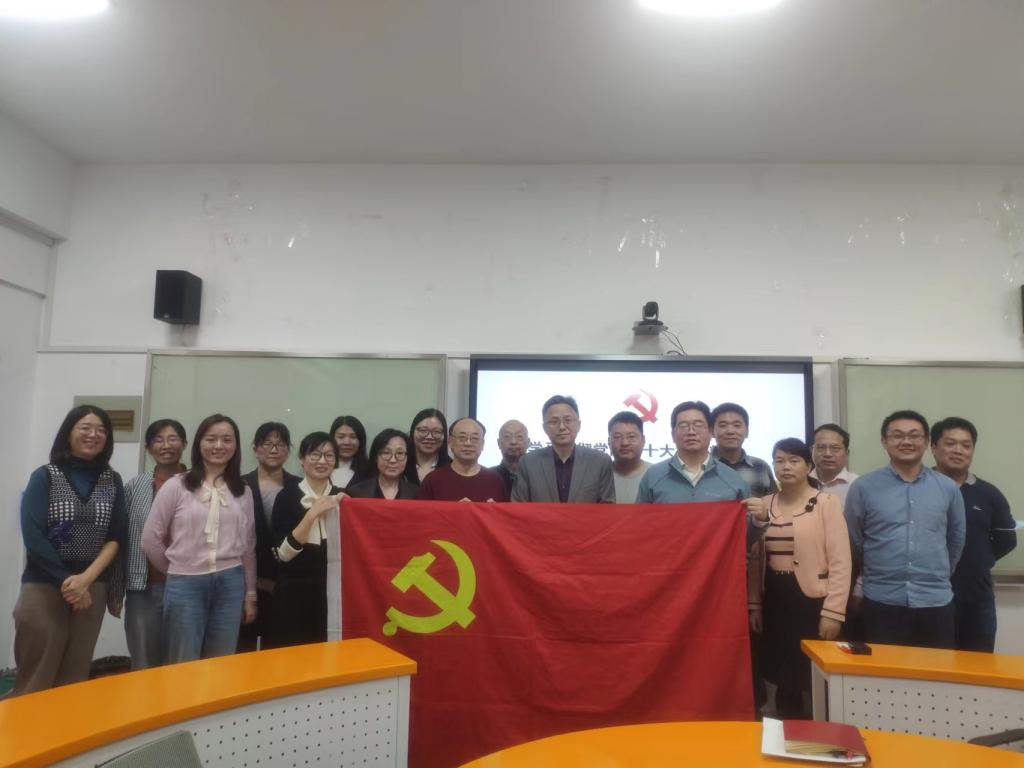 支部书记施丹同志用“一、二、三、五、六”梳理了二十大报告的精髓和要义。她分享了目前许多学术期刊都开设了“研究和阐释党的二十大精神”专栏的有关情况,号召大家深刻领会报告精神,尽快固化研究成果。徐娟同志围绕25个关键词详细系统地介绍了二十大报告各章节内容,她强调二十大报告为未来五年国家经济社会发展指明了方向、描绘了蓝图,作为高校老师要认真学习其精神要义。