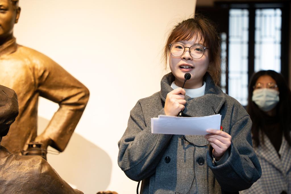 武汉革命博物馆地处长江之滨、黄鹤楼下,下辖毛泽东旧居、中共五大会址、中国共产党纪律建设历史陈列馆等多个红色遗存和场馆。“这是毛泽东同志及其妻子的卧室,毛泽东同志曾在这里伏案工作、挑灯夜读。”来到毛泽东旧居,志愿者的生动讲解让党员同志们身临其境,仿佛看到了毛泽东同志在这里日以继夜地为革命事业辛劳奔波的身影。在毛泽东像前,市场营销本科生党支部刘玉彤同志为大家带来了一场情景微党课。围绕“毛泽东思想”这一主题,她介绍了理论联系实际、没有调查就没有发言权、星星之火可以燎原等经典内容。她认为,“思想上入党是一辈子的事”,各位同志要以“功成不必在我,功成必定有我”的博大胸襟和“不待扬鞭自奋蹄”的昂扬斗志,涵养初心、砥砺前行。