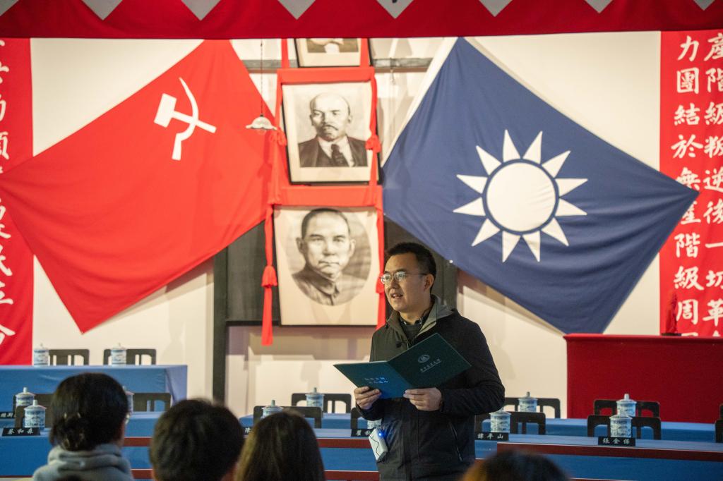 走进中共五大会址,同学们于光影交错中真切地重温了那段革命岁月。会场内还原了当年的陈设,主席台上方,从上至下悬挂着马克思、列宁、孙中山的照片,左右两侧分别悬挂中国共产党、国民党党旗及标语。坐在会场中,刘三宝为预备党员们详细梳理了中共一大到五大的党史历程,讲述了张太雷、李大钊、陈延年等一个个令人动容和难忘的党史小故事。他谈道:“中国共产党人的种种遭遇是中国其他任何党派所不曾遭遇的,在国际共产主义运动史中也极为罕见。回忆峥嵘岁月,我们党的革命是曲折而艰难的,通过农村包围城市武装夺取全国政权,这是中国革命走向成功的唯一正确道路,是中国共产党人走向天安门最近的一条道路。”他勉励在场同志牢记革命精神、明确价值追求,敢于面对挑战、不断刻苦上进,扎实知识学识、练就过硬本领,为实现中华民族伟大复兴的中国梦而持续奋斗。