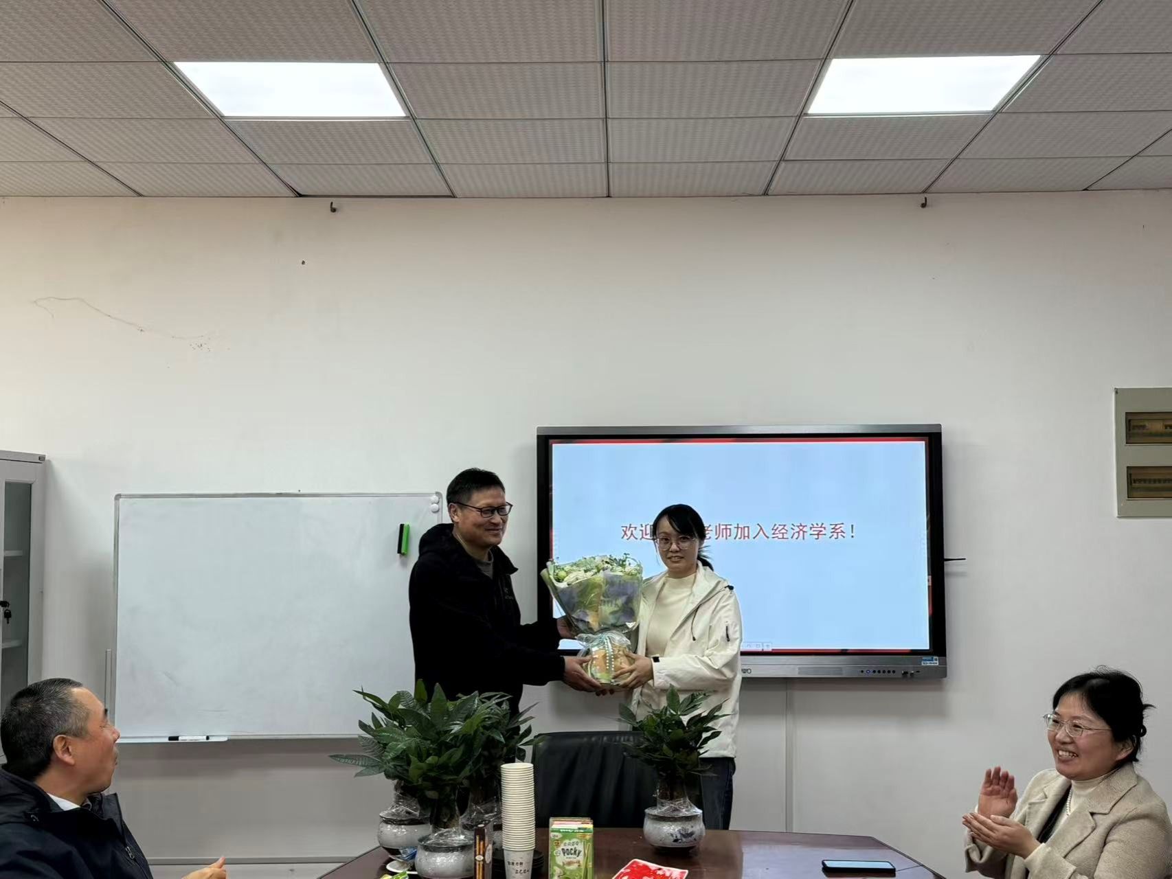 会议伊始,毛海欧同志代表经济学系及党支部对新入职的周梦飞老师和彭妍老师表示热烈欢迎,并简要介绍了两位教师的基本情况与研究领域,期待她们为经济学系和党支部的建设发展注入新活力。