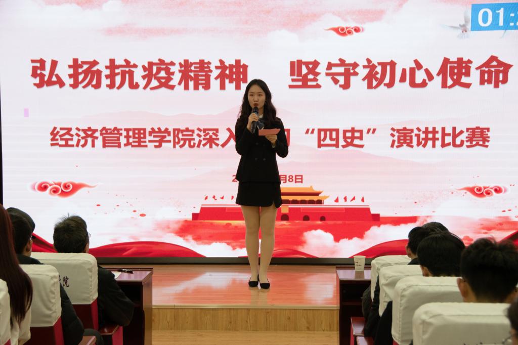 12月8日晚,经各学生党支部、团支部初选推荐,学院复选审核,yl6809永利集团“深入学习‘四史’,坚守初心使命”主题教育之“‘四史’我来讲”演讲比赛决赛于人文楼M501报告厅落下帷幕。学校行政退休党支部、校团委、yl6809永利集团负责人,经管学院全体学生党支部书记及学生党支部、团支部代表参加活动,共同聆听新时代青年对学习“四史”的感悟。